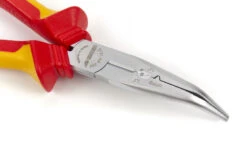 Een Gedore tangenset met de twee meest gebruikte tangen door elektromonteurs moet je bij jouw werkzaamheden altijd bij je hebben. Niet alleen knippen de tangen heel goed, je werkt hier zeer veilig mee. Dit komt doordat er een geïsoleerde laag, bestaande uit tweecomponentenmateriaal is aangebracht op het handvat. Kom je tijdens het knippen per ongeluk in aanraking met elektriciteit, dan kunnen de tangen zo´n 1.000 Volt opvangen en blijf jij ongedeerd.