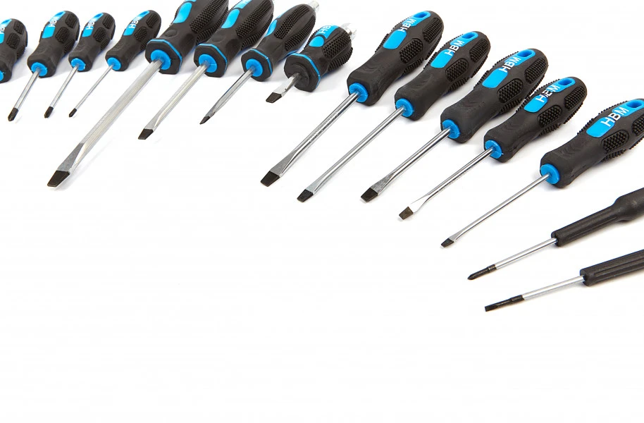 Een set met 21 platkop- en kruiskopschroevendraaiers, onmisbaar op de werkplaats, in de garage en in huis. Hiermee krijg je elke schroef die je tegenkomt eronder! De foam inlay is ideaal voor in een gereedschapswagen en zorgt dat je je favoriete schroevendraaiers telkens snel terug kan vinden.