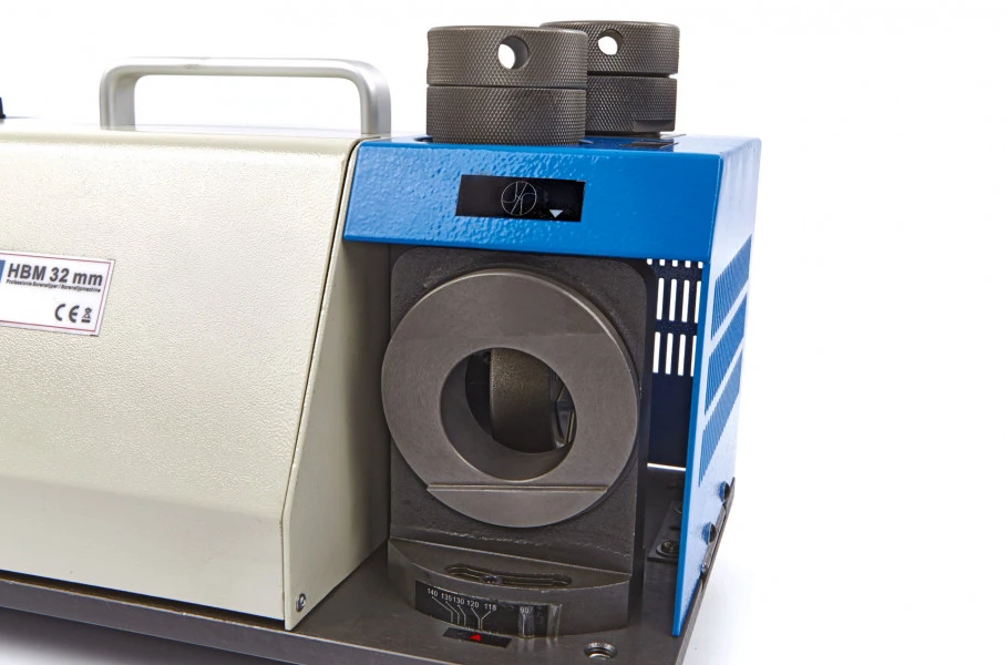 Met deze gepatenteerde borenslijper van HBM kan je een boorpitje slijpen door middel van een schrijffrees aan de voorzijde van de machine, een vrijloophoek en een punthoek. In plaats van een gecentreerde boorpunt te gebruiken, biedt de HBM 32 mm borenslijpmachine ook de mogelijkheid om het middelpunt zelf willekeurig in te stellen. De machine is voorzien van een krachtige DC motor met een stabiele frequentie, een groot vermogen en een lange levensduur. Met de inrichting voor punten, kan er beter worden gecentreerd van de boorpunt op het werkstuk dat je aan het maken bent. Er is een extra station voor het terugslijpen van het boor snijvlak (vrije hoek). De spantangen zijn ook geschikt voor het spannen van tussenmaten.