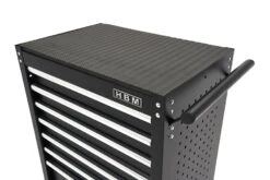 Moet je – als hobbyist of beroepsmatig – relatief vaak gereedschappen verplaatsen? Dan kan een gereedschapswagen handig zijn. Het scheelt je een aantal keer heen en weer lopen én je hoeft niet te sjouwen. Deze wagen van HBM beschikt over zeven lades waarin je behoorlijk wat klein gereedschap kwijt kunt. Zowel rechts als links kan aan de buitenkant op een ophangwand gereedschap geplaatst worden. Daarnaast hebben alle laden veiligheidsblokkering zodat ze niet los kunnen schieten. En wordt de gereedschapswagen geleverd met vier draaibare wielen waarvan twee met rem.