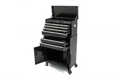 Met de HBM Gereedschapswagen inclusief Opzetkast in stijlvol zwart, heb je vanaf nu al je gereedschap georganiseerd en binnen handbereik. Deze gereedschapswagen is een praktische, eenvoudige en duurzame oplossing voor elke werkplek.
