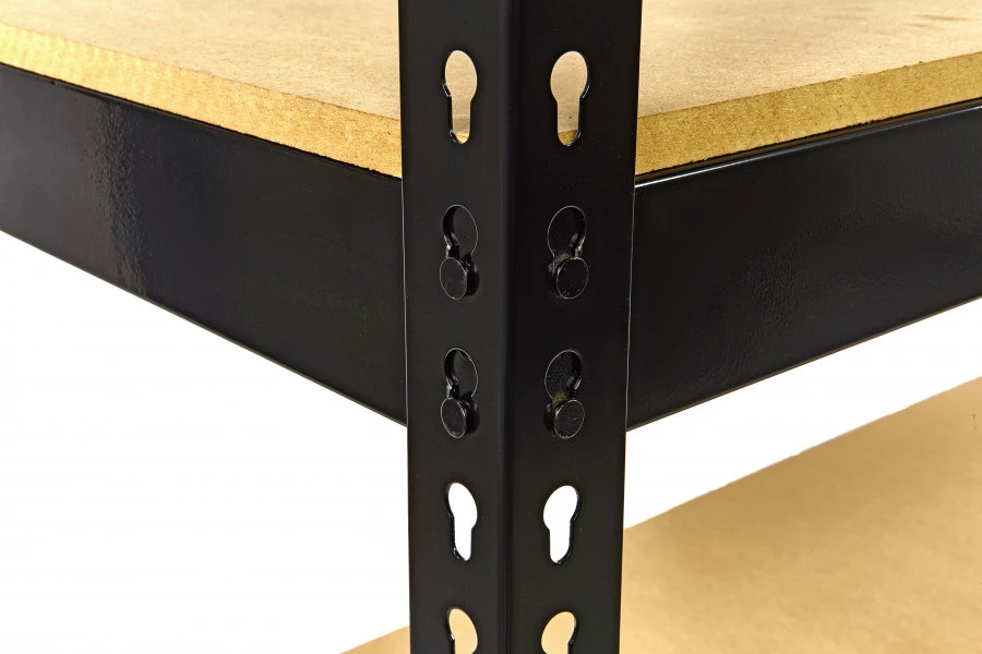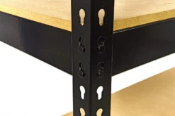 De kras en slagvaste poedercoating beschermt de metalen delen tegen beschadigingen en oxidatie, wat de levensduur en de veiligheid van de stelling ten goede komt. De boutloze montage maakt dat de liggers zeer snel en eenvoudig in hoogte te verstellen zijn. Voor de veiligheid (en het gemak) leg je de zwaarste lasten natuurlijk op de onderste liggers. De stelling is ideaal voor het opbergen van zware lasten, zoals bijvoorbeeld goed gevulde gereedschapskisten of een airbrush compressor.