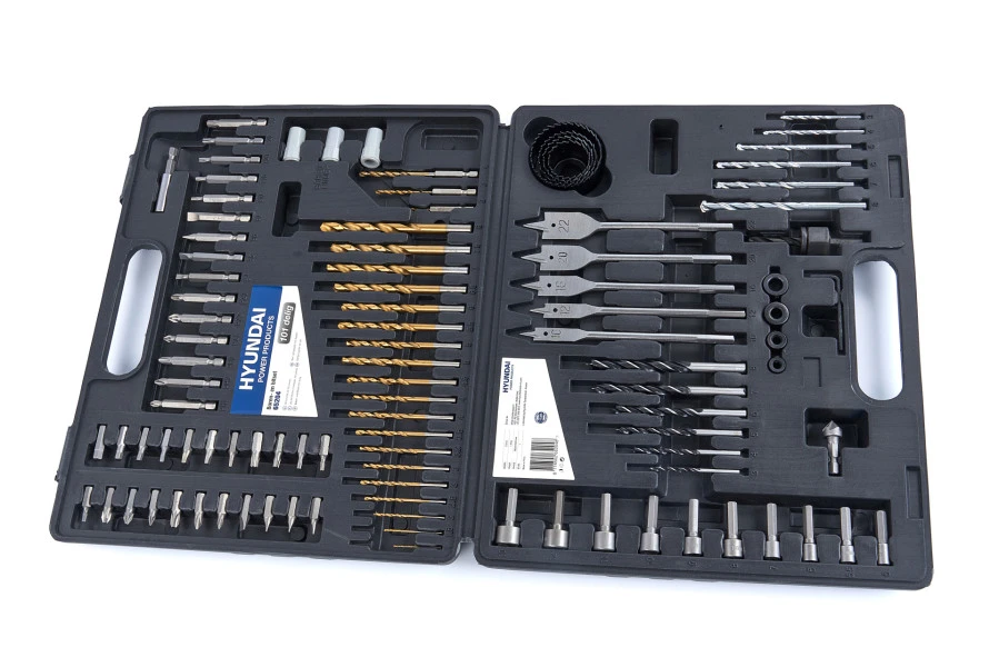 Een goede bits- en borenset is voor elke klusser belangrijk. Met deze Hyundai set haal je 101 bits, boren en aanverwanten in huis. In de handige koffer kun je onder andere betonboren, houtboren, hss staalboren en allerlei soorten bits vinden in diverse maten. Elke onderdeel heeft een eigen plek zodat je altijd het juiste onderdeel kunt vinden als je het nodig hebt.