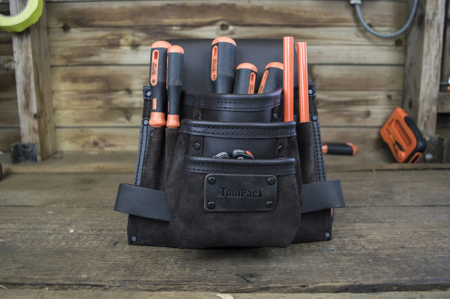 Met deze gereedschapsholster van ToolPack neem je klein gereedschap en materialen altijd veilig mee op de werkplaats of bouwwerf, gemaakt van hoge kwaliteit geolied leer. De holster beschikt over ongeveer 8 opties om je gereedschap van verschillende afmetingen op te bergen, waaronder 2 hamerlussen en kan aan vrijwel elke riem bevestigd worden.